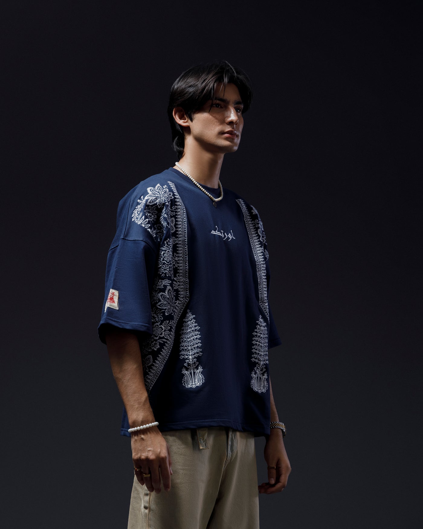 Fabric: Navy-Blue, Premium Cotton Terry (200 GSM) Design Details: White embroidery on the front and back. Simple, clean, and classic Fit: Oversized unisex fit